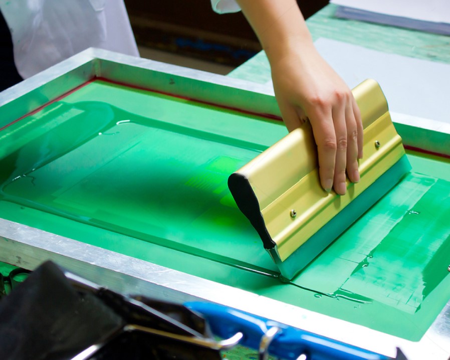 絲網(wǎng)印刷是通過(guò)繃網(wǎng)上的孔洞傳遞油墨到材料上的印刷方式。絲網(wǎng)印版以絲網(wǎng)為支撐體,在網(wǎng)上涂布一層感光膠,再與陽(yáng)圖底片密合。經(jīng)過(guò)曝光、顯影制成印版,其中空白部分的感光膠層受光發(fā)生化學(xué)反應(yīng)形成固化的版膜封住網(wǎng)孔,圖文部分的感光膠層被除去,網(wǎng)孔通透。印刷時(shí),油墨通過(guò)圖文部分的網(wǎng)孔轉(zhuǎn)移到承印物上。